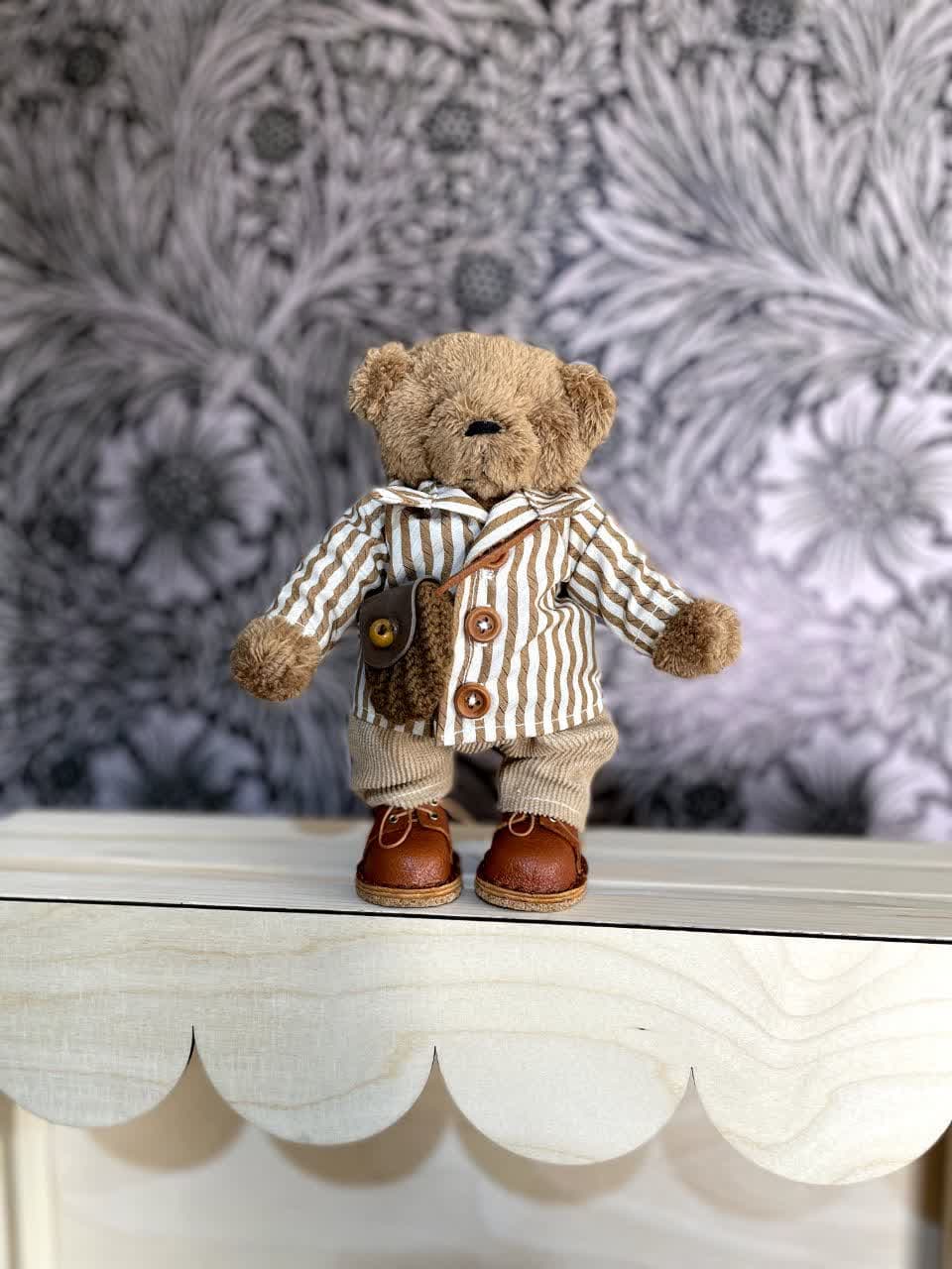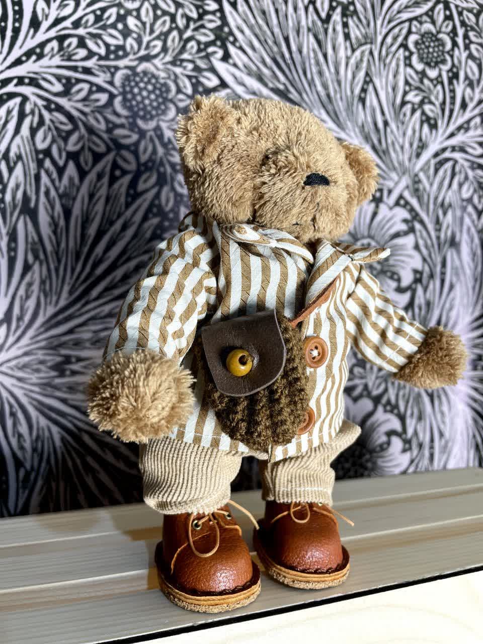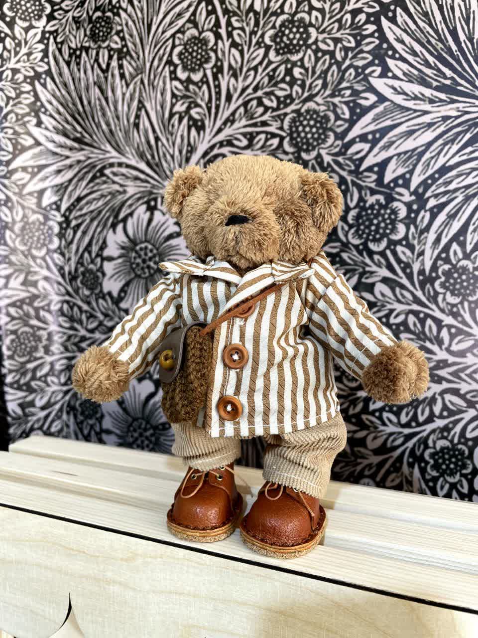 عروسک خرس تدی قهوهای با بافت نرم و جزئیات ظریف در طراحی، هدیهای بسیار مناسب برای فرزند شما محسوب میشود. احتمالا خرسهای تدی کمی را دیدهاید که کفش به پا داشته باشند! عروسک خرس تدی با کفشهای چرمی و باکیفیت، نه تنها امکان ایستادن آن روی سطوح مختلف را فراهم میکند، بلکه ظاهری بامزه و دوستداشتنی به آن میدهد که هر کودکی میتواند با آن ارتباط بگیرد و بازی کند. همچنین کیف کوچک بافتنی و لباس راه راهی که به تن دارد، این ظرافت و زیبایی را به بهترین شکل ممکن تکمیل میکند.