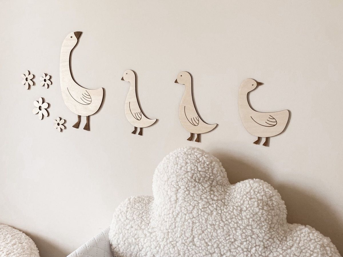 استیکر چوبی دیواری کودک طرح مرغابی ست سه عددی